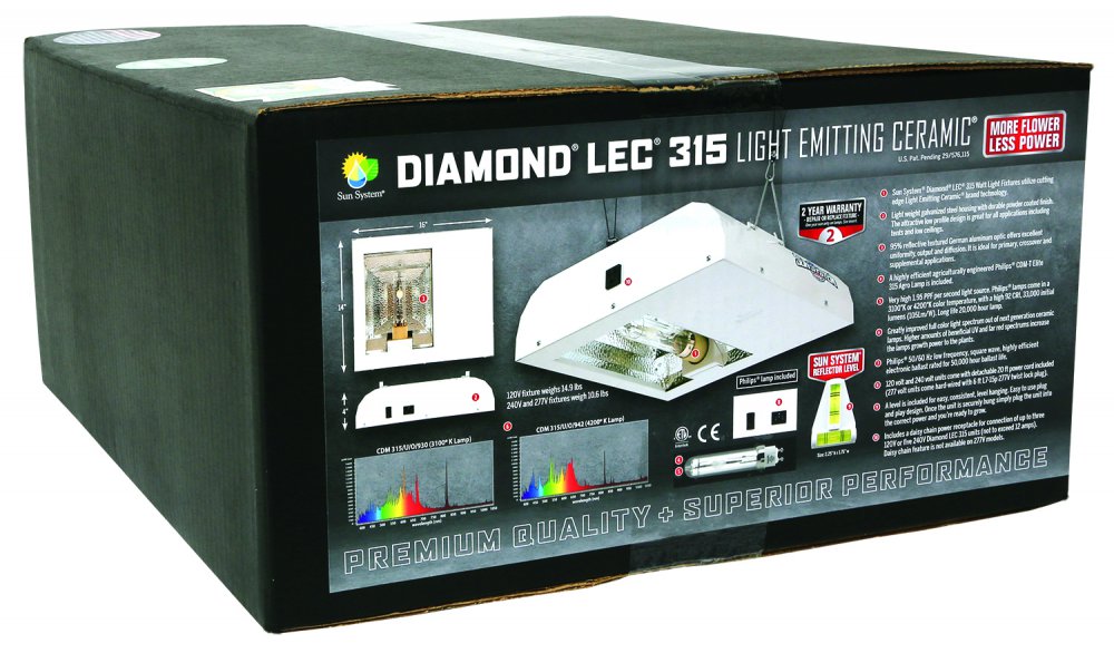 Sun System® Diamond® LEC® Brand 315 watt nízkoprofilová svítidla využívají špičkovou technologii Light Emitting Ceramic®. Nejmodernější 95% reflexní německý hliníkový interiér nabízí jedinečný výstup, odrazivost a rozptyl světla.