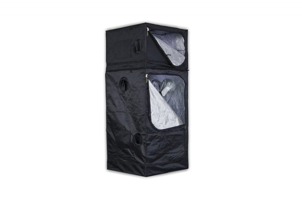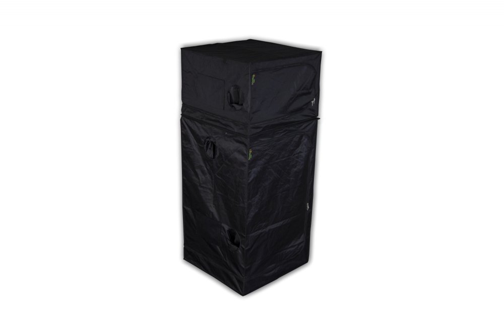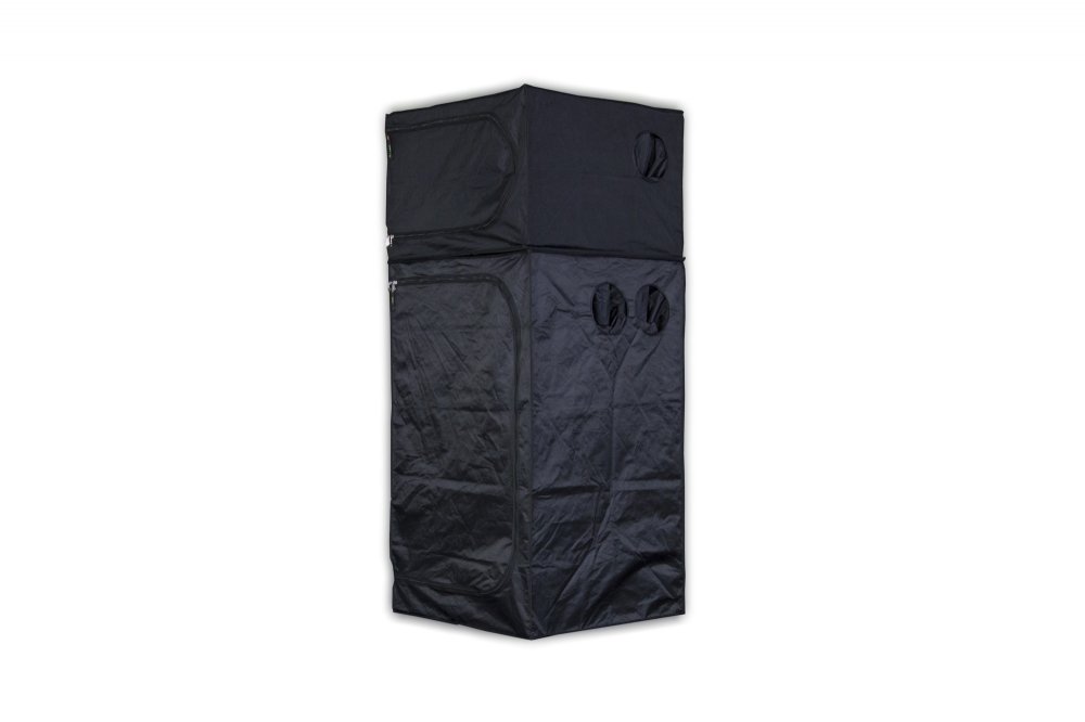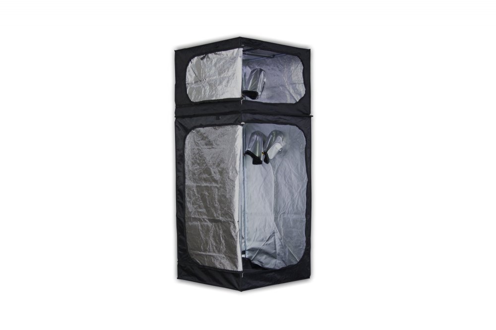Dvoupatrový pěstební box umožňuje kombinaci prostoru pro matečnici, množení, pěstování až po kvetení. Box velice snadno postavíte a stejně snadno zase složíte. Konstrukci má pěstební box z odlehčených kovových trubek. Stěny, podlaha a strop jsou vyrobeny z velice hrubé a absolutně neprodyšné nepromokavé, světlu odolné textilie. Vnitřní stěny stanu jsou potažené reflexní fólií Mylar D 210, kde výrobce zaručuje 95% odráživost. Prostory jsou mezi sebou rozděleny termálněizolačním podpůrným panelem o rozměru 5 mm. Box Twin je kompletně omyvatelný. Stan Dark Room má pochopitelně průchody pro cirkulaci vzduchu, úchyty na zavěšení potřebných doplňků s nosností u horního boxu až 20 kg a dolního 30 kg, pochopitelně má i otvor na kabely a pro připojení cooltube. Parádně jednoduchá konstrukce stanu umožňuje postavení i složení pěstebního stanu za pár minut. U tohoto typu stanu jsou ve předu dvoje dveře pro lepší přístup. Návod na postavení pěstebního boxu je součástí balení.